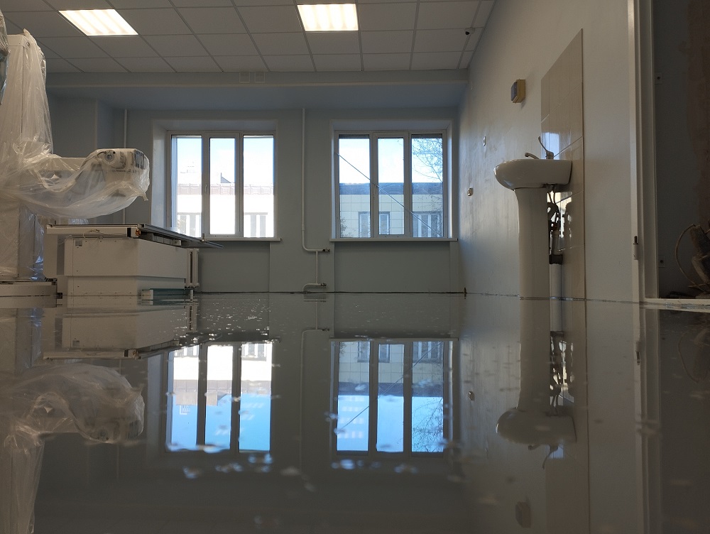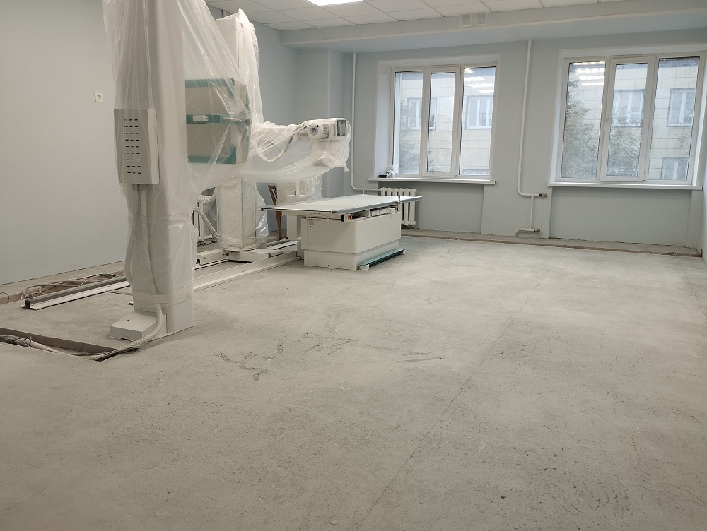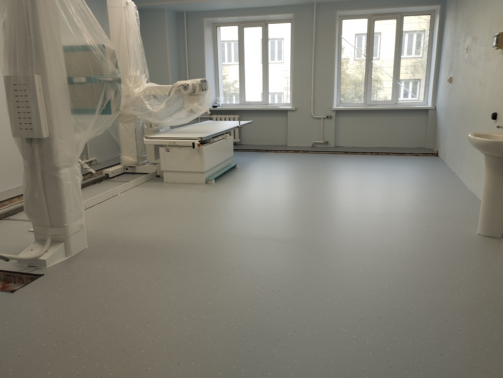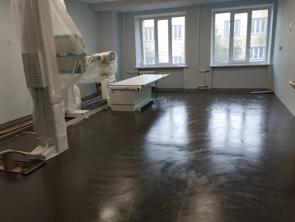 Городская клиническая больница г.Челябинск отделение Ренгенологии. Устройство двухкомпонентного полиуретанового наливного покрытия пола