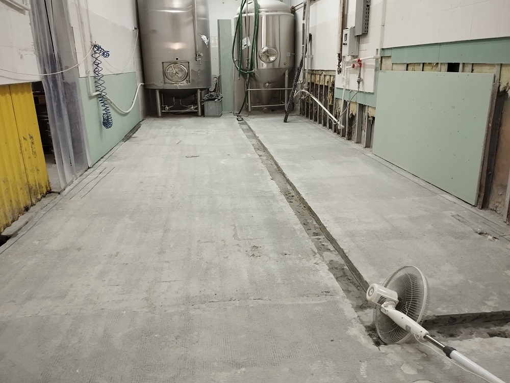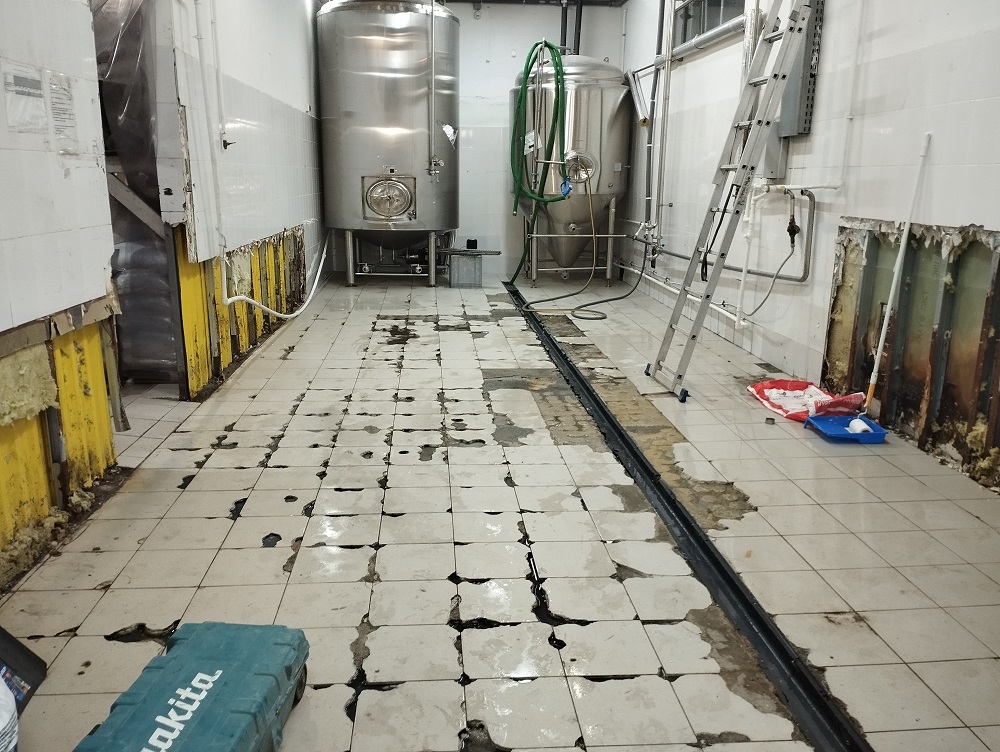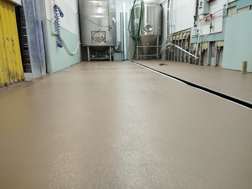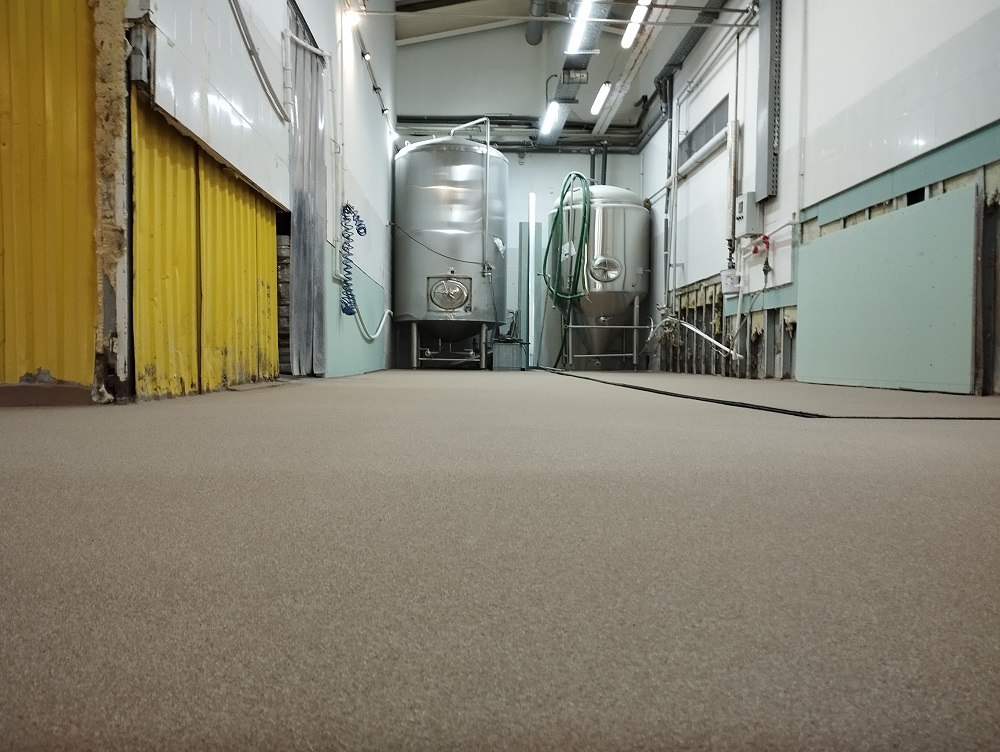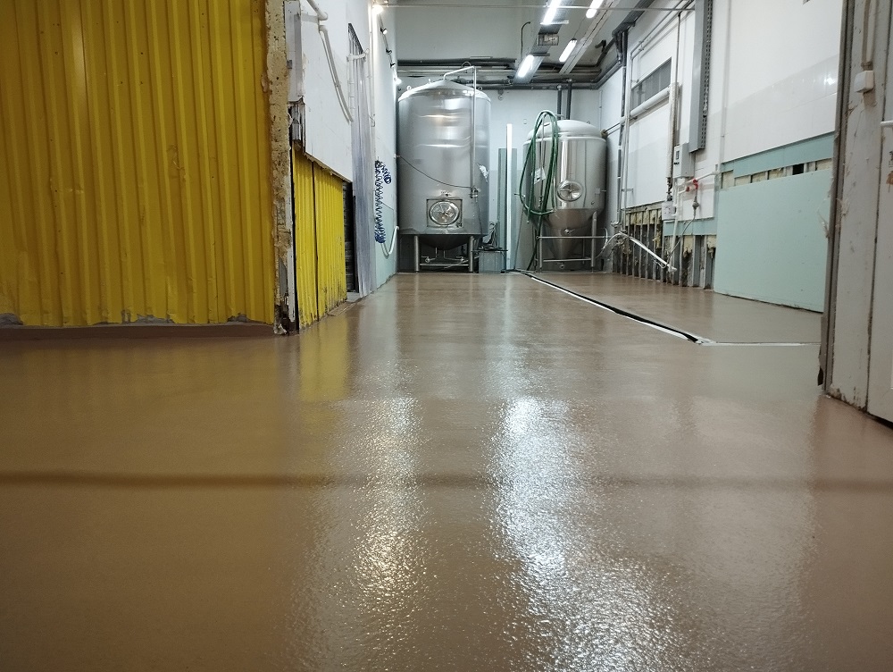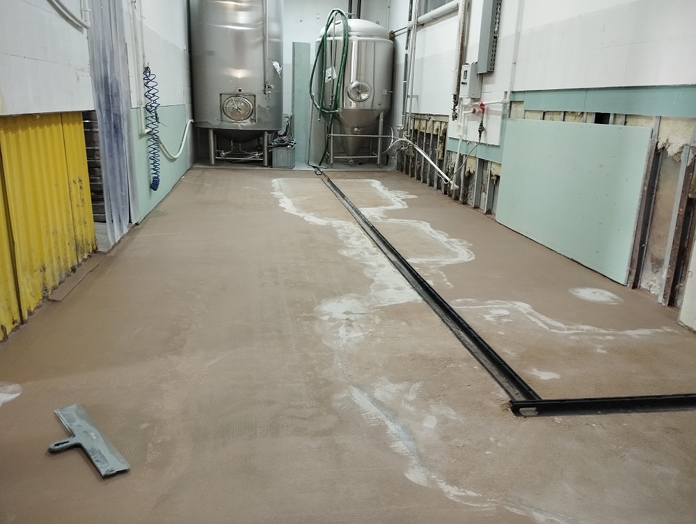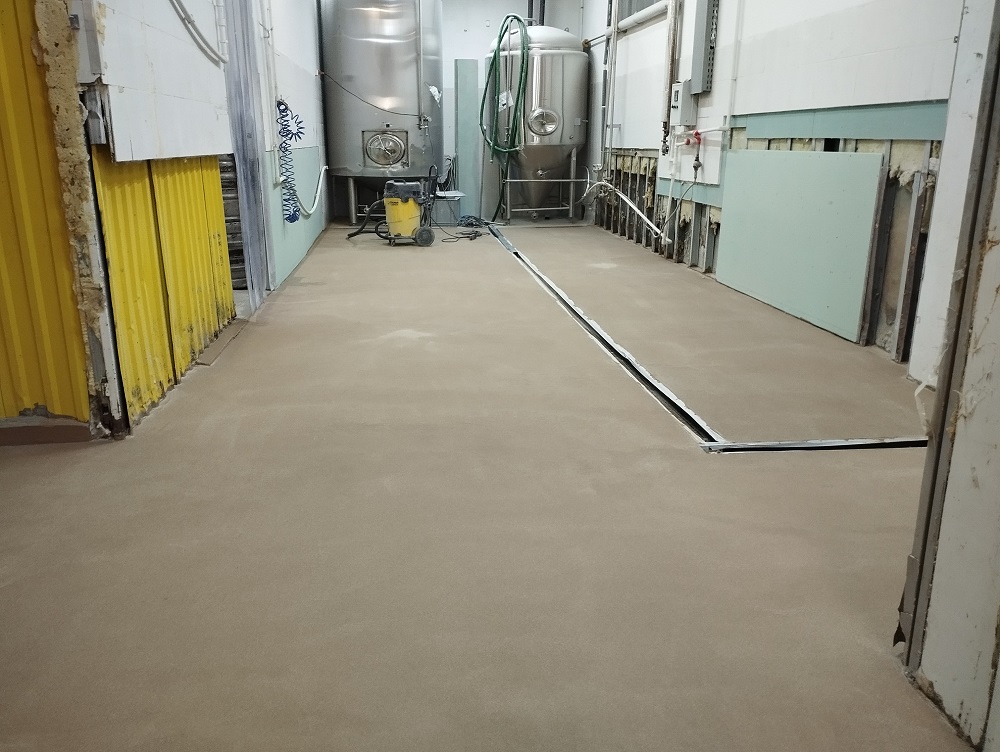 Пивная компания "ВАРОЧНЫЙ ПОРЯДОК" г.Арамиль Свердловской обл.. Реконструкция производственного цеха розлива, замена керамогранитного покрытия пола на полимерное полиуретан цементное , химстойкое,т |
